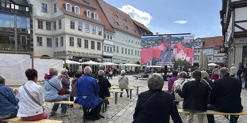 Zum dritten Mal in Folge hatten Studierende der Hochschule Harz die Möglichkeit, gemeinsam mit der Welterbestadt Quedlinburg dokumentarische Kurzportraits für den Tag des offenen Denkmals am 14. September 2025 zu realisieren. Auch in diesem Jahr standen zwei bedeutende Bauprojekte im Mittelpunkt, die den Besucher*innen filmisch in der Reihe »Bick hinter den Bauzaun« nähergebracht wurden.