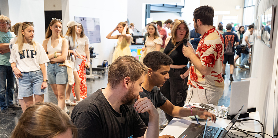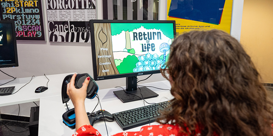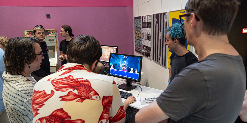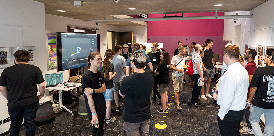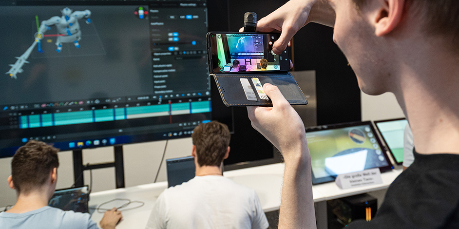 So konnten Studieninteressierte Arbeiten aus den Bereichen Film, (3D-) Animation, Keying, Motion Capturing, Grafikdesign und Augmented Reality, Virtual Reality, Fotografie, Informationsgrafik und Game Design kennenlernen. Selbstverständlich konnte man neben den AR-, VR- und Game-Projekten auch von Studierenden entwickelte Webanwendungen vor Ort nicht nur ansehen, sondern auch selbst testen und anspielen.