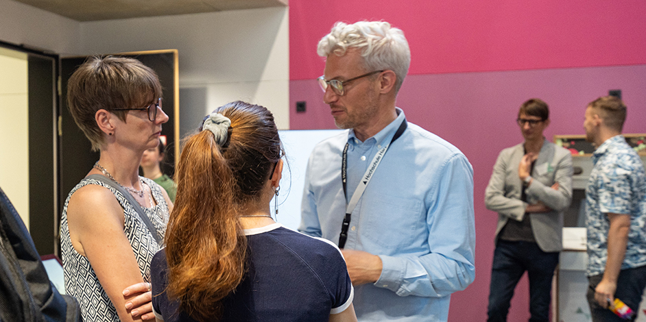 Die Besucher*innen konnten dann gleich mit Studierenden ins Gespräch kommen, sie zu den Projekten ausfragen oder sich aus erster Hand vom Bachelorstudium Medieninformatik oder Masterstudium Medien- und Spielekonzeption berichten lassen. Viele nutzen auch die Möglichkeit mit den Lehrenden über das Studium an der Hochschule Harz zu sprechen.
