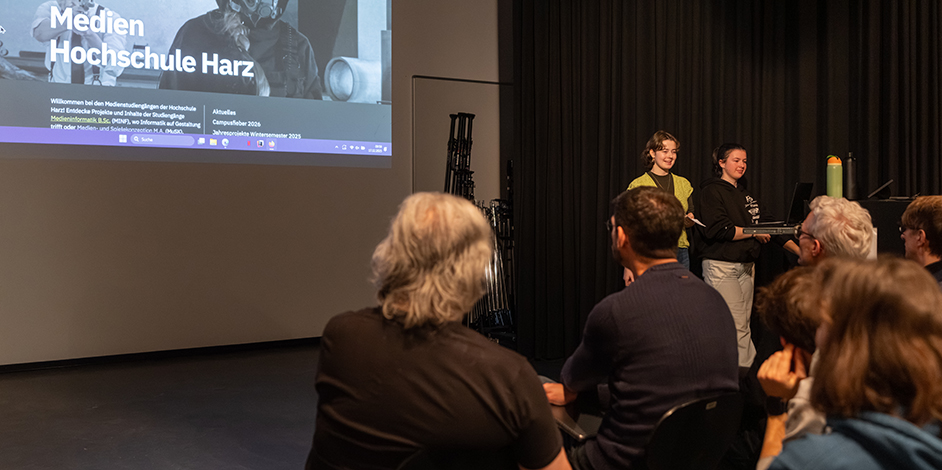 Am letzten Mittwoch vor Vorlesungsende des Wintersemesters – das an der Hochschule Harz immer kurz vor Weihnachten liegt – stehen im Studiengang Medieninfomratik B.Sc. immer die Zwischenpräsentationen der Jahresprojekte an. Das Jahresprojekt ist im 5. und 6. Semester der Medieninformatik-Studierenden eine zweisemestrige Projektarbeit, bei der sich die studentischen Projektgruppen intensiv einer konkreten Aufgabe widmen und diese selbst organisiert umsetzen.
