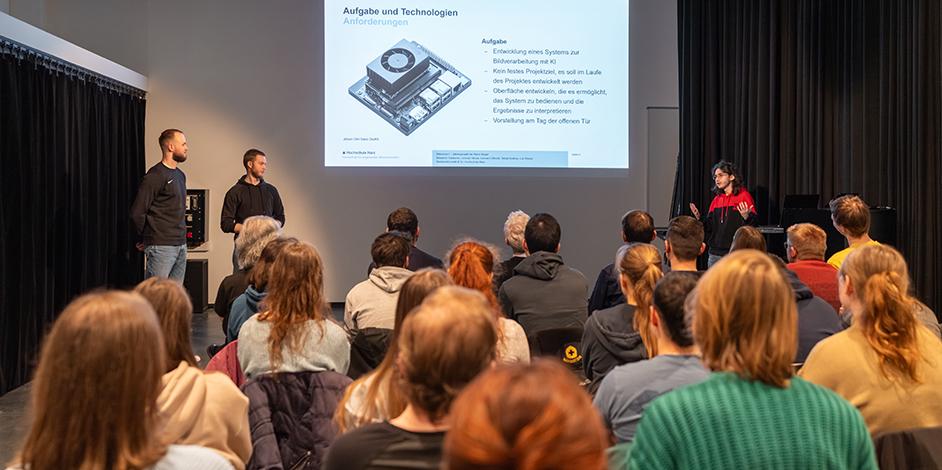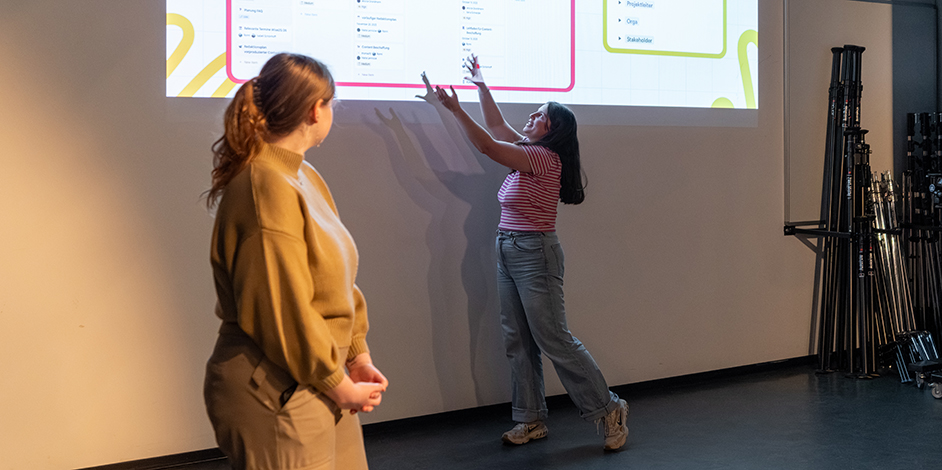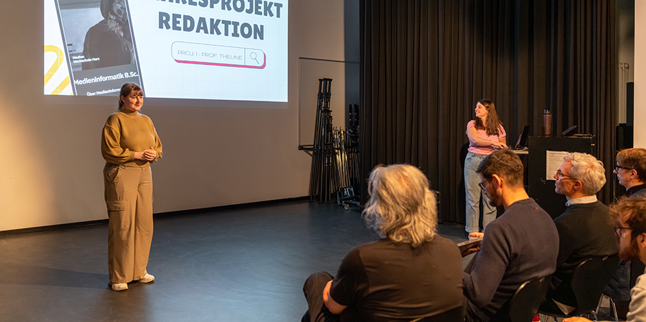 Im Studio der Medieninformatik wurden die Zwischenergebnisse zur »Halbzeit« der Projekte vor Studierenden und Lehrenden vorgestellt – es ist immer wieder spannend zu sehen was in den unterschiedlichen Projekten erarbeitet wird!